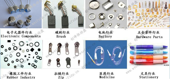 Chuangruitong products are widely used: light industry machinery, electronics, batteries, connectors, standard parts, bearings, oil bearings, nozzles, buttons, zippers, cork, food machinery, pharmaceuticals, medical devices, hardware clock, auto parts industries, the automation of the work piece orientation, sorting the materials, packaging, counting, inspection and other functions. And according to customer design requirements for the customers of various non-standard automation equipment and upgrading existing equipment and a variety of connector assembly machines and other equipment.